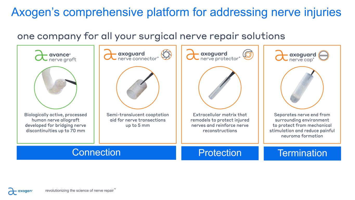 Axogen’s comprehensive platform for addressing nerve injuries revolutionizing the science of nerve repair™ Connection Protection Termination