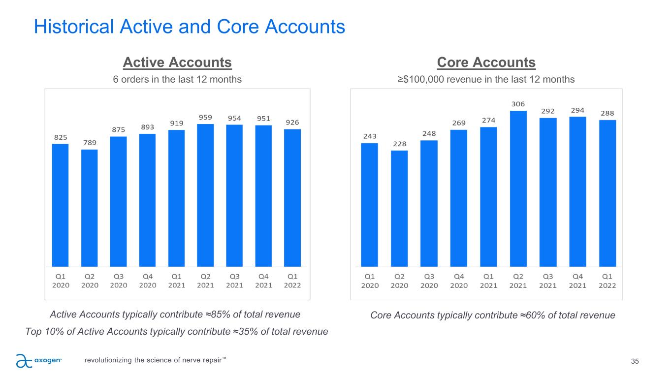 Historical Active and Core Accounts Active Accounts typically contribute ≈85% of total revenue Top 10% of Active Accounts typically contribute ≈35% of total revenue Active Accounts 6 orders in the last 12 months Core Accounts typically contribute ≈60% of total revenue Core Accounts ≥$100,000 revenue in the last 12 months 35revolutionizing the science of nerve repair™