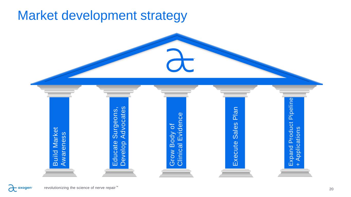 20 Market development strategy B u il d M a rk e t A w a re n e s s E d u c a te S u rg e o n s , D e v e lo p A d v o c a te s G ro w B o d y o f C li n ic a l E v id e n c e E x e c u te S a le s P la n E x p a n d P ro d u c t P ip e li n e + A p p li c a ti o n s revolutionizing the science of nerve repair™