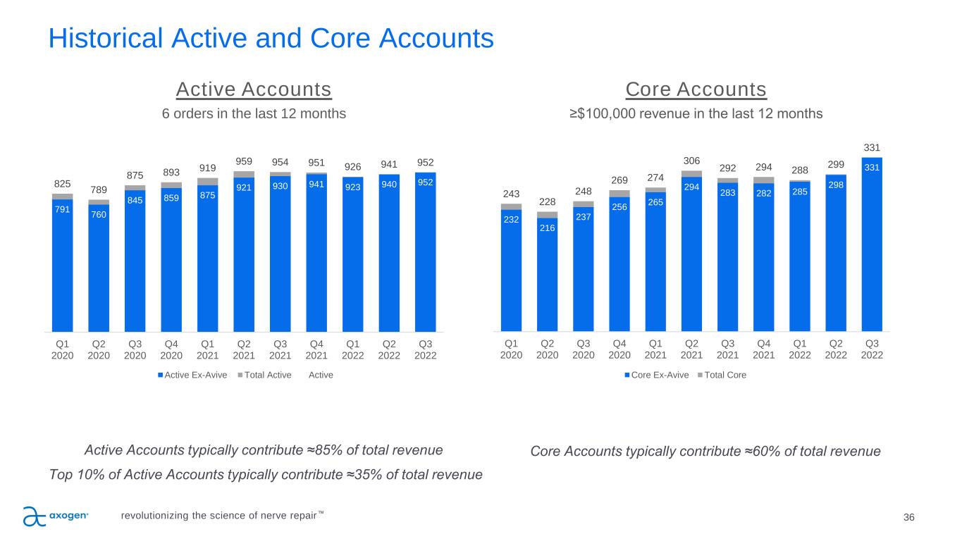 Historical Active and Core Accounts Active Accounts typically contribute ≈85% of total revenue Top 10% of Active Accounts typically contribute ≈35% of total revenue Active Accounts 6 orders in the last 12 months Core Accounts typically contribute ≈60% of total revenue Core Accounts ≥$100,000 revenue in the last 12 months 36revolutionizing the science of nerve repair™ 232 216 237 256 265 294 283 282 285 298 331 243 228 248 269 274 306 292 294 288 299 331 Q1 2020 Q2 2020 Q3 2020 Q4 2020 Q1 2021 Q2 2021 Q3 2021 Q4 2021 Q1 2022 Q2 2022 Q3 2022 Core Ex-Avive Total Core 791 760 845 859 875 921 930 941 923 940 952825 789 875 893 919 959 954 951 926 941 952 Q1 2020 Q2 2020 Q3 2020 Q4 2020 Q1 2021 Q2 2021 Q3 2021 Q4 2021 Q1 2022 Q2 2022 Q3 2022 Active Ex-Avive Total Active Active