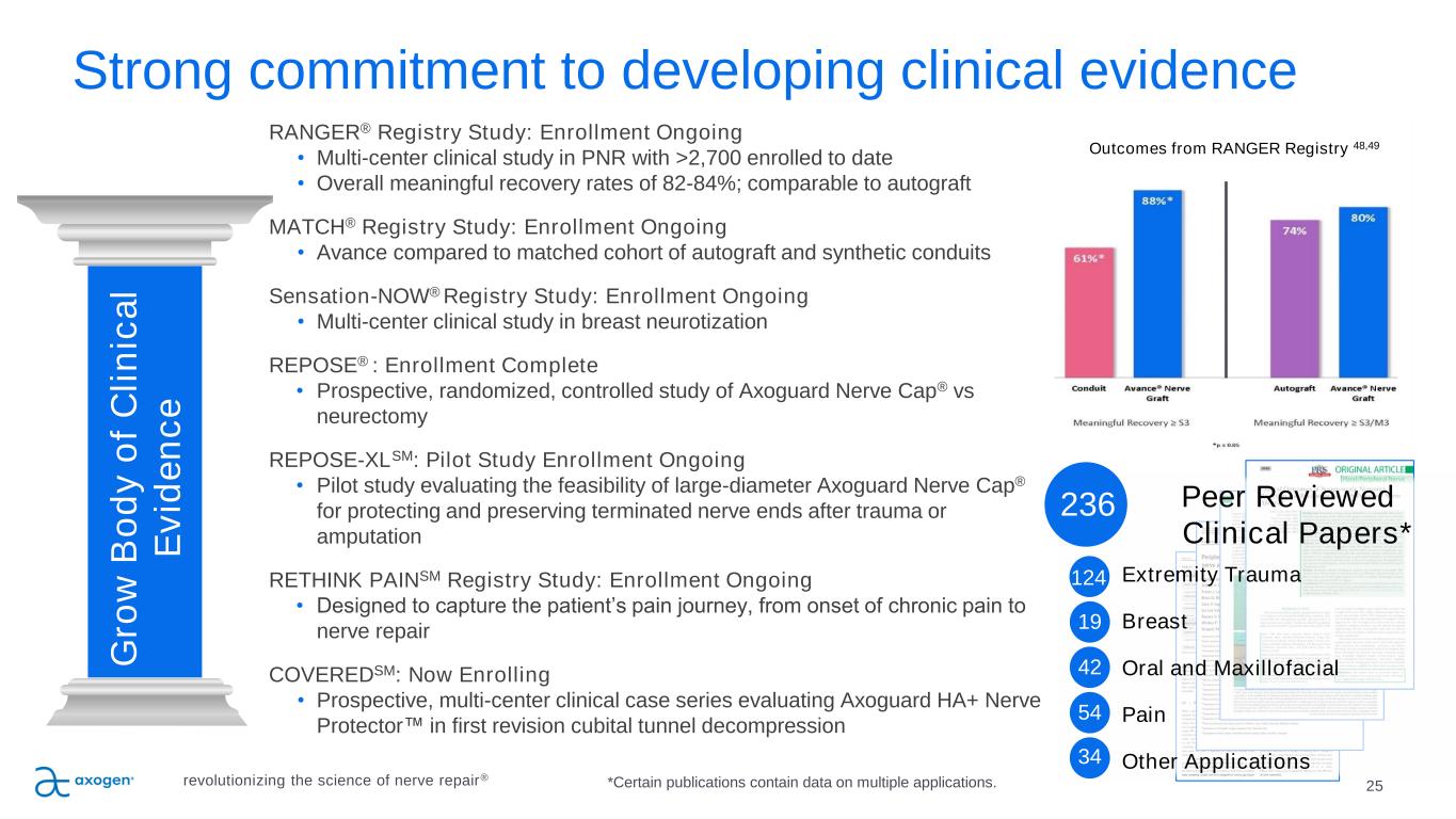 24 Market development strategy B u il d M a rk e t A w a re n e s s G ro w B o d y o f C li n ic a l E v id e n c e E x e c u te S a le s P la n E x p a n d P ro d u c t P ip e li n e + A p p li c a ti o n s revolutionizing the science of nerve repair® E d u c a te S u rg e o n s , D e v e lo p A d v o c a te s
