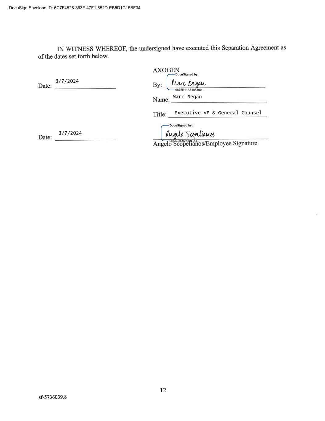 DocuSign Envelope ID: 6C7F4528-363F-47F1-852D-EB5D1C15BF34 3/7/2024 Executive VP & General Counsel Marc Began 3/7/2024