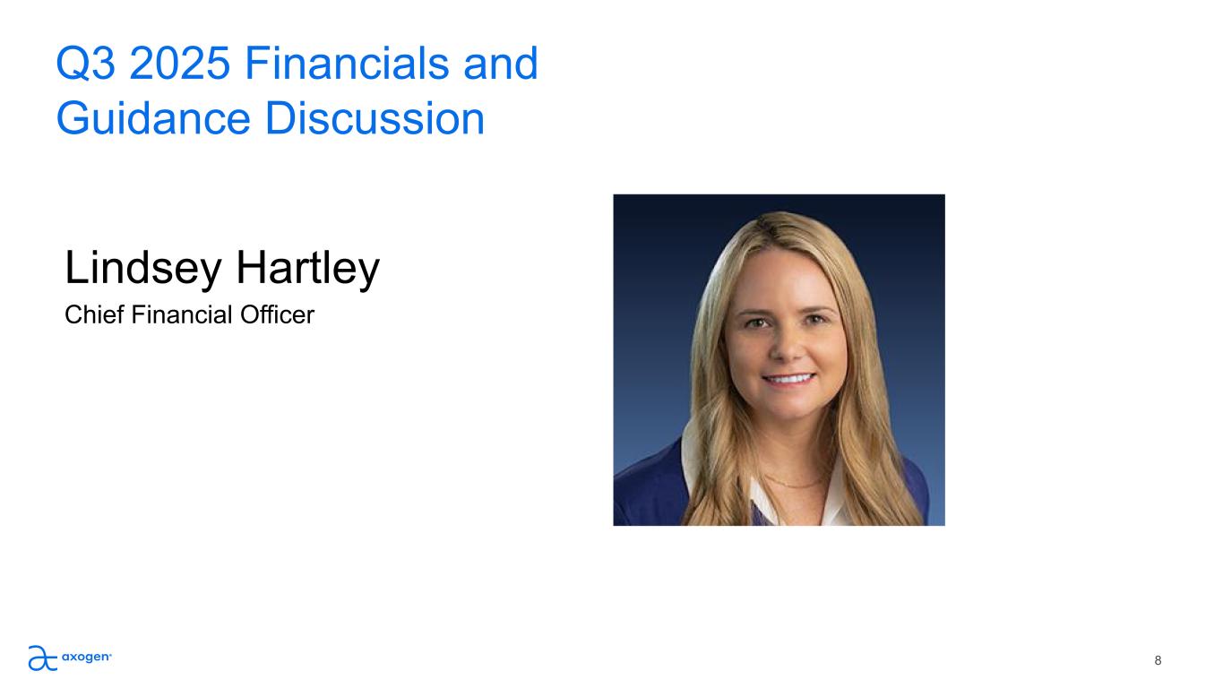 Biologics License Application For Avance® Nerve Graft Anticipate FDA approval for Avance® Nerve Graft as a Biologic in the US on December 5, 2025. 7 Q3 2025 Update