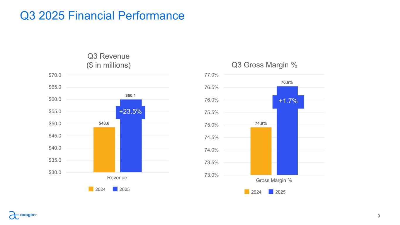 Disclaimer 2 Forward-looking Statements This presentation contains “forward-looking” statements as defined in the Private Securities Litigation Reform Act of 1995. These statements are based on management's current expectations or predictions of future conditions, events, or results based on various assumptions and management's estimates of trends and economic factors in the markets in which we are active, as well as our business plans. Words such as “expects,” “anticipates,” “priorities,” “objectives,” “intends,” “plans,” “believes,” “seeks,” “estimates,” “projects,” “forecasts,” “continue,” “may,” “should,” “will,” “goals,” and variations of such words and similar expressions are intended to identify such forward-looking statements. Forward-looking statements include, but are not limited to, statements related to: our expectation for regulatory approvals including approval of the BLA for Avance® by the FDA in December 2025; market development opportunities; and 2025 financial guidance, including revenue growth, cash and gross margins. Actual results or events could differ materially from those described in any forward-looking statements as a result of various factors, including, without limitation, statements related to potential disruptions caused by leadership transitions, global supply chain issues, record inflation, hospital staffing issues, product development, product potential, expected clinical enrollment timing and outcomes, regulatory process and approvals, financial performance, sales growth, surgeon and product adoption, market awareness of our products, data validation, our visibility at and sponsorship of conferences and educational events, global business disruption caused by Russia’s invasion of Ukraine and related sanctions, recent geopolitical conflicts in the Middle East, potential impact of recent government actions and policies, including the One Big Beautiful Bill Act and the October 2025 U.S. government shutdown, on our business, tax position, and regulatory processes, as well as those risk factors described under Part I, Item 1A., “Risk Factors,” of our Annual Report on Form 10-K for the most recently ended fiscal year. Forward-looking statements are not a guarantee of future performance, and actual results may differ materially from those projected. The forward-looking statements are representative only as of the date they are made and, except as required by applicable law, we assume no responsibility to publicly update or revise any forward-looking statements. About Non-GAAP Financial Measures To supplement our condensed consolidated financial statements, we use the non-GAAP financial measures of EBITDA, which measures earnings before interest, income taxes, depreciation and amortization, EBITDA margin, Adjusted EBITDA, which further excludes non-cash stock compensation expense, and Adjusted EBITDA margin. We also use the non-GAAP financial measures of Adjusted Net Income (Loss) and Adjusted Net Income (Loss) Per Common Share -diluted which excludes noncash stock compensation expense from Net Income (Loss) and Net Income (Loss) Per Common Share - diluted, respectively. We also use the Operational Cashflow metric, which corresponds to Net change in cash, cash equivalents, restricted cash, and investments, less cashflow from issuance or repayment of long-term debt. These non-GAAP measures are not based on any comprehensive set of accounting rules or principles and should not be considered a substitute for, or superior to, financial measures calculated in accordance with GAAP and may be different from non-GAAP measures used by other companies. In addition, these non-GAAP measures should be read in conjunction with our financial statements prepared in accordance with GAAP. The reconciliations of the non- GAAP measures to the most directly comparable financial measures calculated and presented in accordance with GAAP should be carefully evaluated. We use these non-GAAP financial measures for financial and operational decision-making and as a means to evaluate period-to-period comparisons. We believe that these non-GAAP financial measures provide meaningful supplemental information regarding our performance and that both management and investors benefit from referring to these non-GAAP financial measures in assessing our performance and when planning, forecasting, and analyzing future periods. We believe these non-GAAP financial measures are useful to investors because (1) they allow for greater transparency with respect to key metrics used by management in its financial and operational decision-making and (2) they are used by our institutional investors and the analyst community to help them analyze the performance of our business, the Company’s cash available for operations, and the Company’s ability to meet future capital expenditure and working capital requirements.