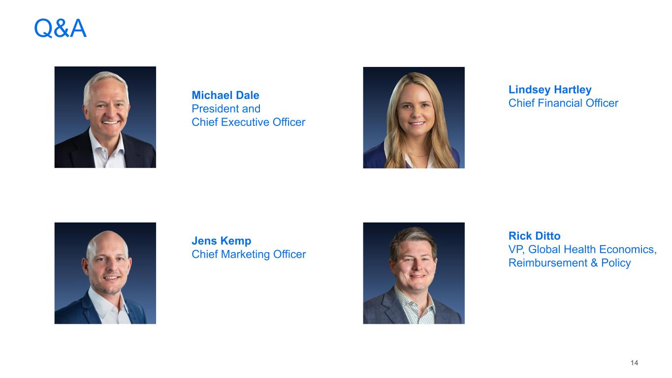 Michael Dale President and Chief Executive Officer Jens Kemp Chief Marketing Officer Rick Ditto VP, Global Health Economics, Reimbursement & Policy 14 Lindsey Hartley Chief Financial Officer Q&A