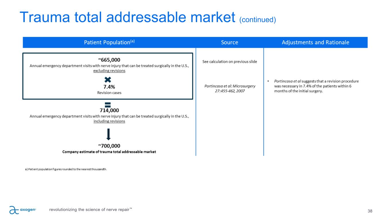 Trauma total addressable market (continued) 38revolutionizing the science of nerve repair™